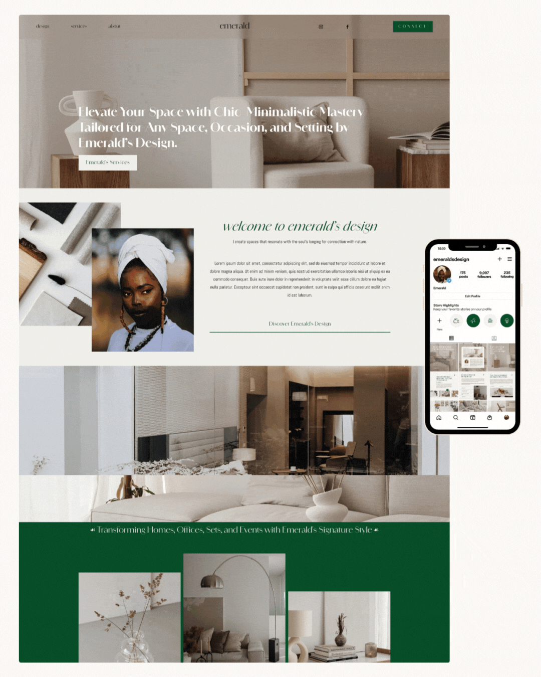 starting at $397Explore the Emerald Luxe Squarespace template, crafted for creative entrepreneurs, interior designers, and personal brands ready to elevate their online presence. Emerald’s Design offers a streamlined, professional website experience complete with essential pages.