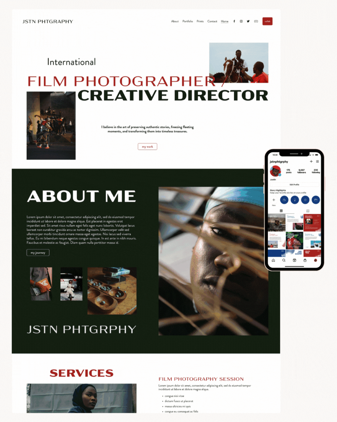 Full customization of the JSTN PHTGRPHY Luxe template, ensuring a tailored design that aligns with your brand’s style and goals.Complimentary Social Media Branding Package: